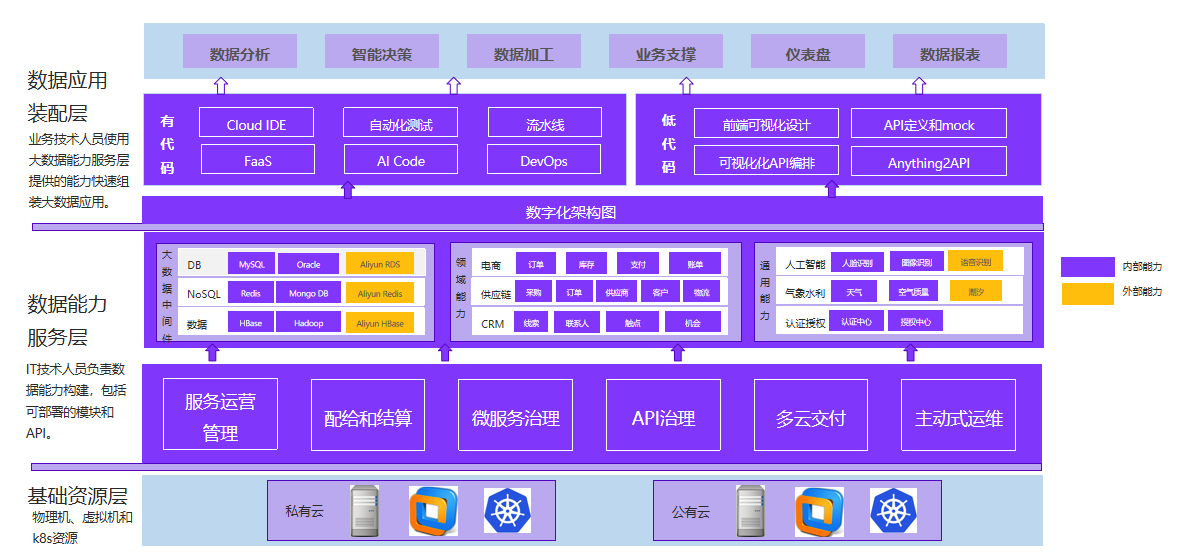 作为国内的领先云原生开发平台,ok138cn太阳集团创新不断探索云原生+大数据开发平台的建设之路,在基础资源层,包含物理机、虚拟机和k8s资源;数据能力服务层是IT技术人员负责数据能力构建,包括可部署的模块和API;数据应用装配层,业务技术人员使用大数据能力服务层提供的能力快速组装大数据应用。
