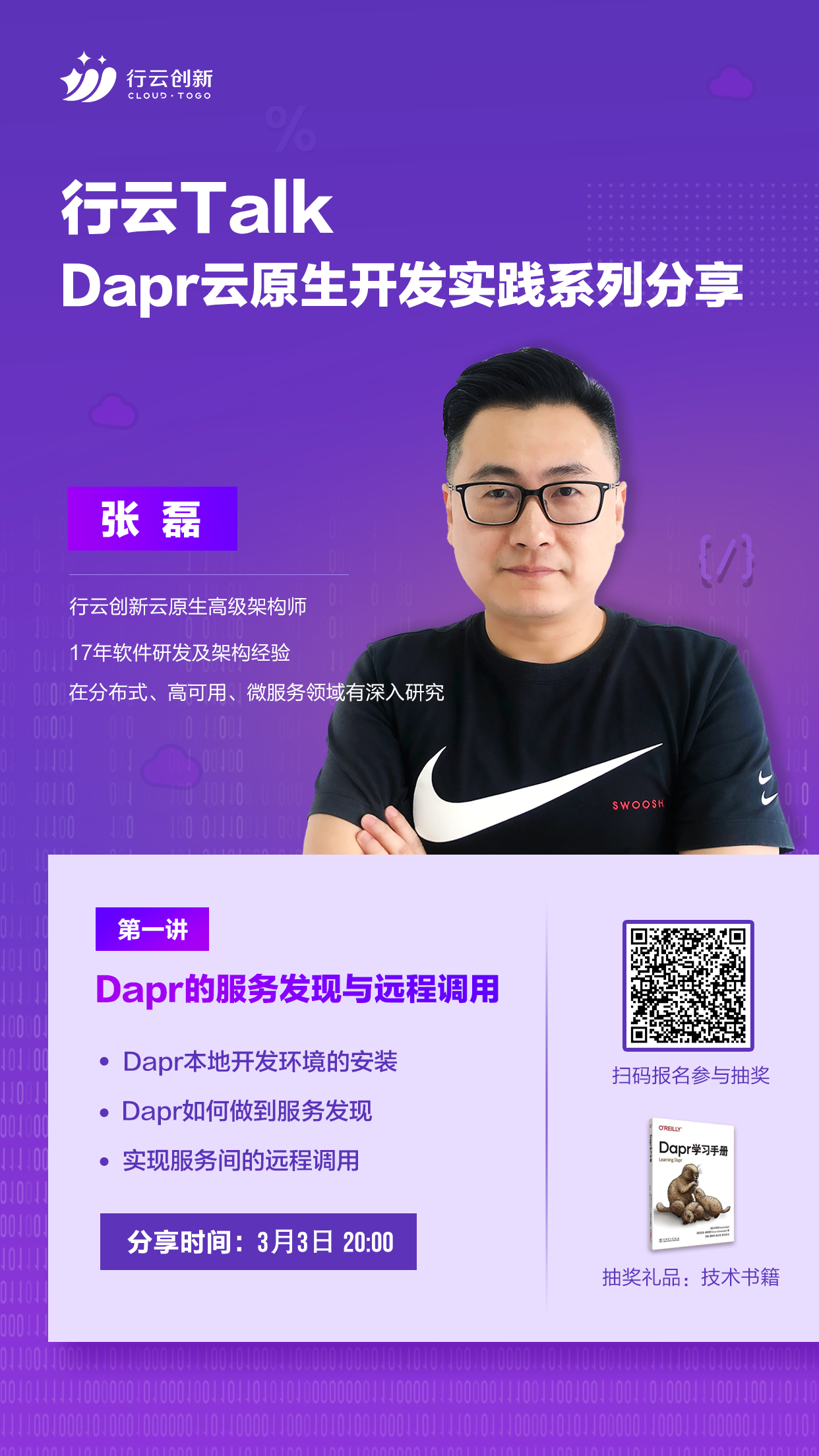 3月3日20:00,Dapr云原生开发实践系列第一期内容即将开讲,ok138cn太阳集团创新云原生高级架构师张磊分享:Dapr的服务发现和远程调用,介绍Dapr本地开发环境的安装,Dapr如何做到服务发现以及实现服务间的远程调用。